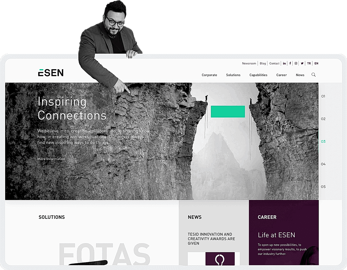 ESEN’e, genç olmaya ve genç kalmaya özen gösteren, empati sahibi ve modern gelişmelere hızlı adapte olan kurumsal bir görünüm kazandırmaya özen gösterdik.