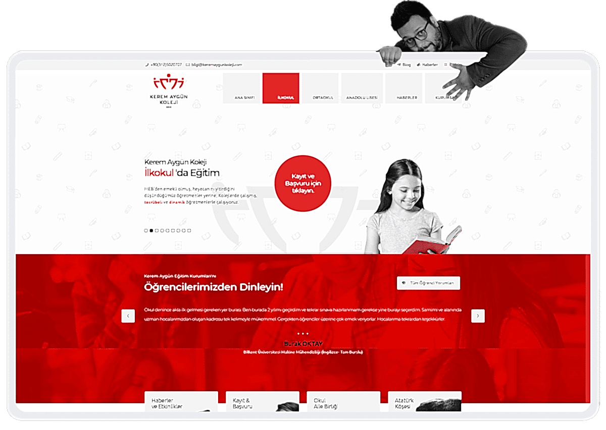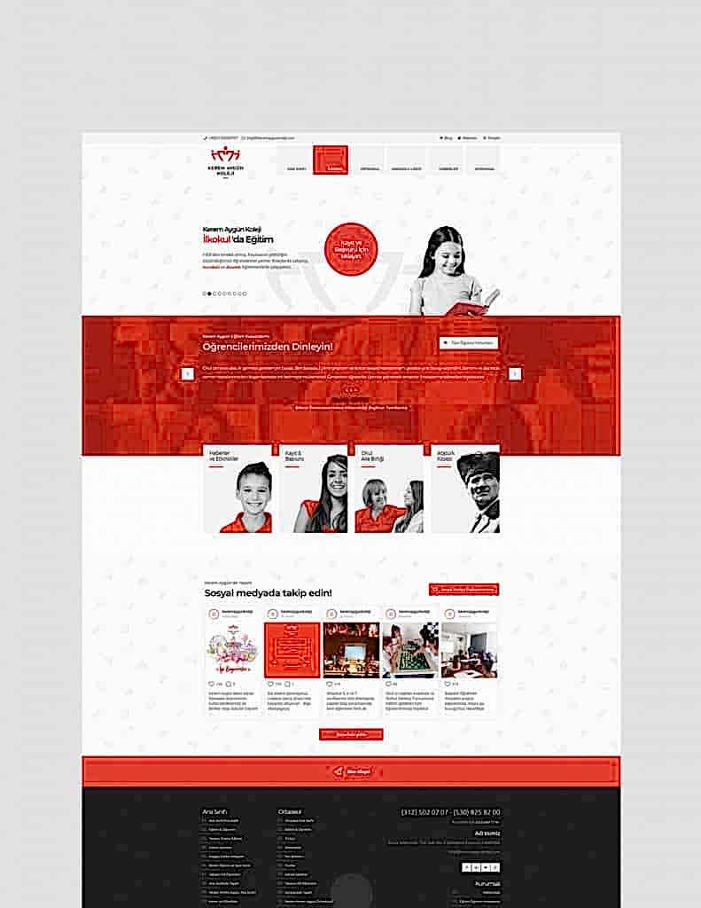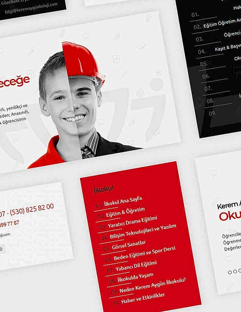 Kerem Aygün Kolejinin “çağımız gerekliliklerine uygun” eğitim ilkesi, kolejin başlıca iletişim ortamı olan web sitesine de taşınmış, özenli bir çalışma sonucunda oluşturulan tasarım, göze güzel görünen bir görsellik, kullanışlılık ve erişilebilirlik hedefleri doğrultusunda tasarlanmıştır.